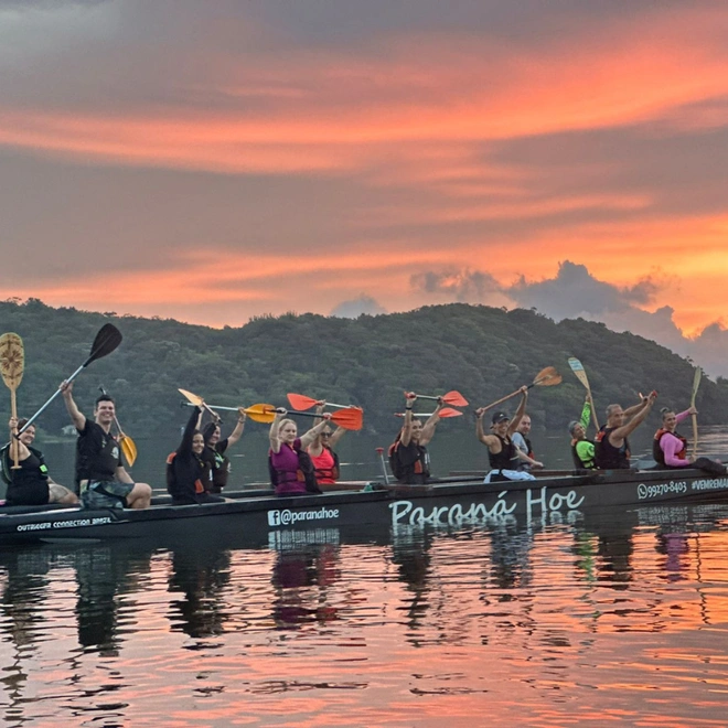 Remada de aproximadamente 6 km (ida e volta), saindo da nossa base em direção à Ilha da Cotinga ou Cais do Porto de Paranaguá.